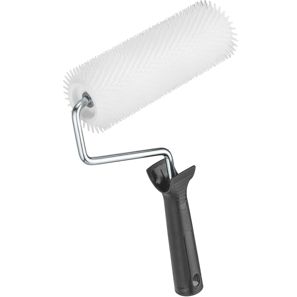 Le rouleau à picots en plastique avec des picots de 12 mm et une largeur de travail de 19 cm est l'outil idéal pour percer les bulles d'air dans les revêtements de sol et obtenir un résultat uniforme. Grâce au plastique résistant aux solvants, les bulles d'air peuvent être rapidement éliminées sur différents matériaux - de la chape liquide aux mortiers de ragréage en passant par les résines – avant qu'elles ne provoquent des dommages ou nécessitent des retouches. Le noyau de 41 mm et le rouleau fixe de 8 mm, combinés à la monture télescopique, assurent une pression uniforme et un travail confortable, même sur de grandes surfaces. Aussi appelé rouleau à piquots, cet outil professionnel est indispensable pour les peintres, vernisseurs et poseurs de sols souhaitant obtenir des surfaces lisses et régulières.